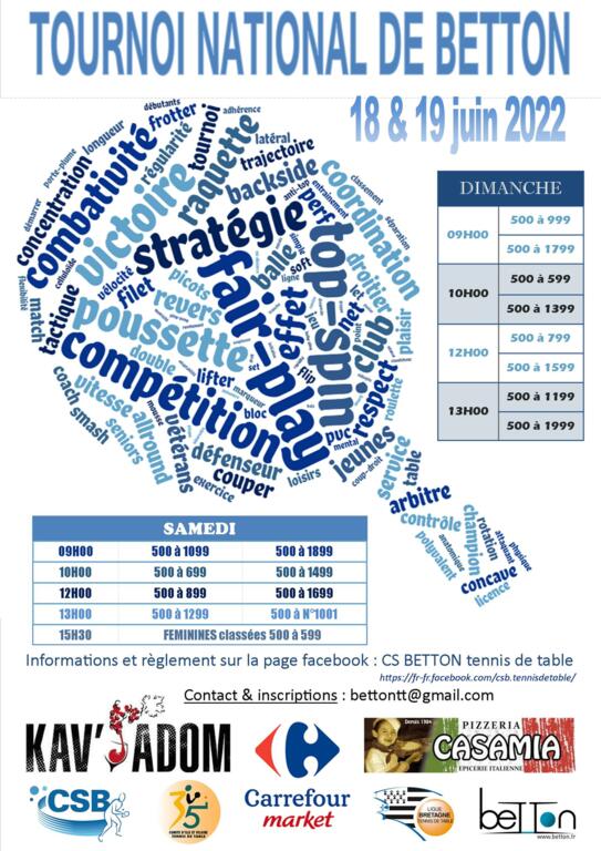 Le CS BETTON (35) est heureux de vous annoncer le retour de son traditionnel Tournoi National les 18 & 19 juin 2022.